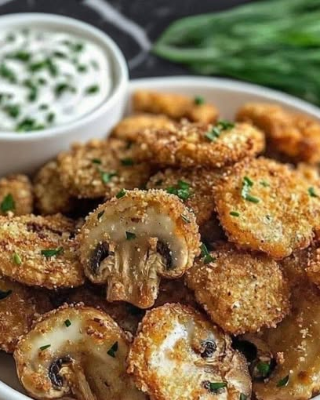 Your Keto Crispy Garlic Mushroom Bites are ready to enjoy! Serve immediately for the best crunch.